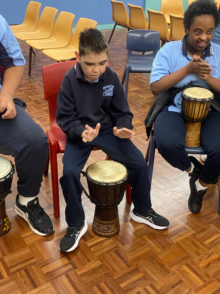 We proudly provide music lessons through Rhythm Village, made possible by the generous support of the Morris Children's Foundation.