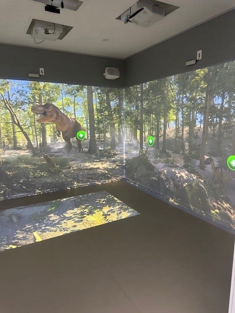 Our immersion room features hundreds of immersive experiences, including adventures with dinosaurs, which enhance teaching and learning while also supporting sensory regulation for our students.